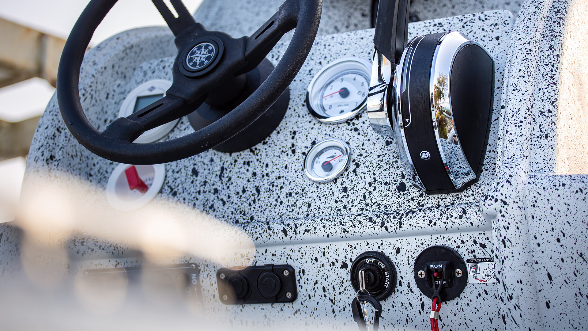 Unsere Next Generation Steuerkonsole mit verschließbarem Stauraum ist speziell für Mextboote entwickelt und der optimale Aufbau für dein 630er Mext. Die Konsole wird aus GFK gefertigt und kommt in derselben Farbe die du für das Boot auswählst. Die Abmessungen des Steuerstandes betragen 85 x 60 x 110 cm. Alternativ kannst du dich auch für die normale Konsole entscheiden, die etwas kleiner ausfällt. Die Abmessungen betragen 70 x 40 x 90 cm. Des weiteren kannst du noch bestimmen, ob du die Konsole zentral oder auf der Steuerbordseite deines Mext Bootes montiert haben möchtest. Je nachdem wie du dich entscheidest, werden bereits in der Produktion die Leerrohre für die Verkabelung positioniert.